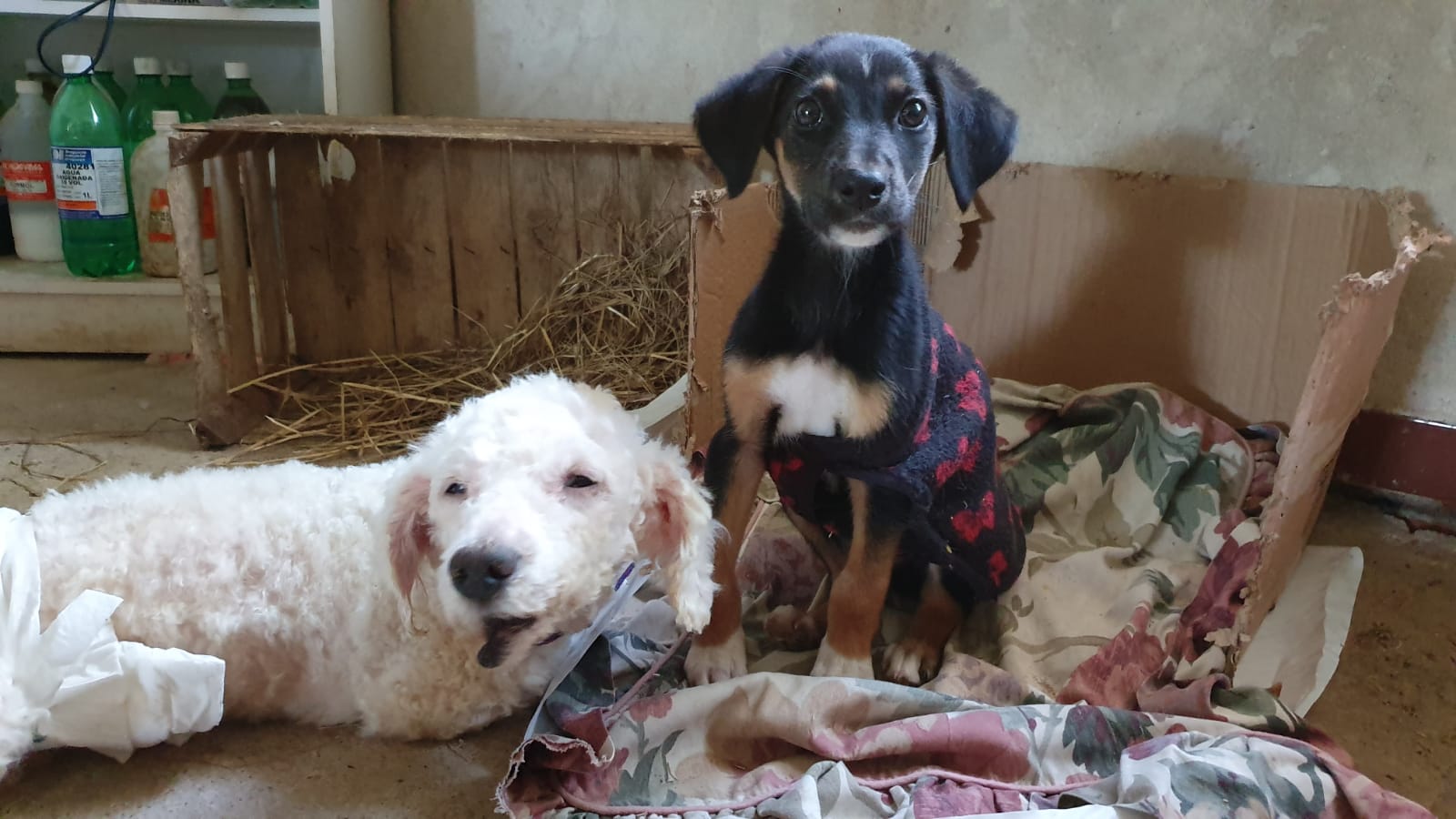 En la portera de Ecqus suelen dejar abandonados perros y gatos. Es habitual encontrarnos con cajas de cachorros o animales atados a la portera.