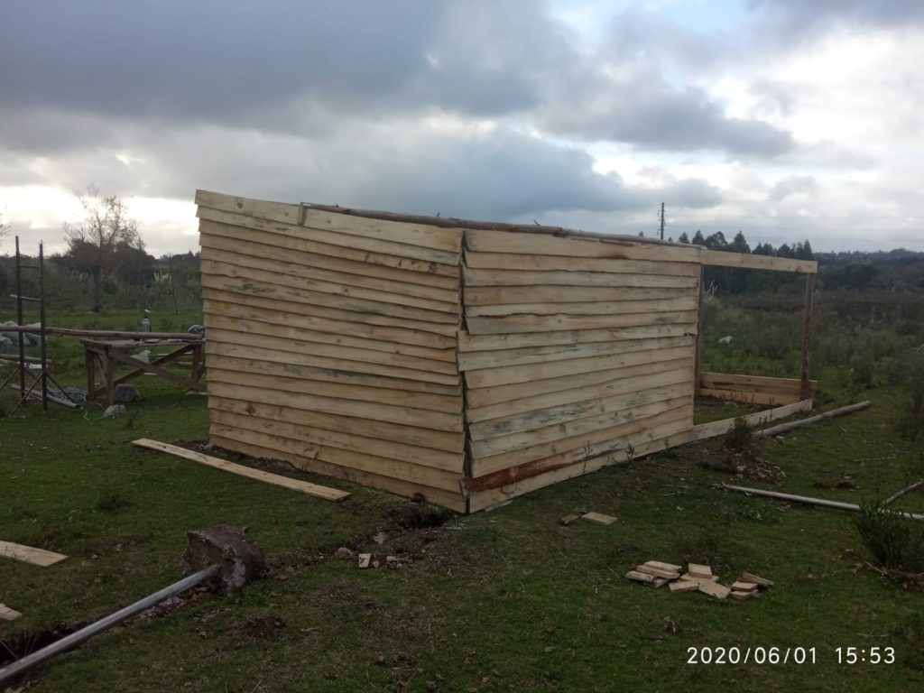Gracias a la colaboración de todas las personas que confían en nuestro trabajo y nos apoyan, hemos construido nuevas cabañas. Probamos varios materiales de construcción y en este momento las estamos haciendo con madera, material relativamente económico y duradero. Además es calentito en invierno y los protege del viento y las heladas.