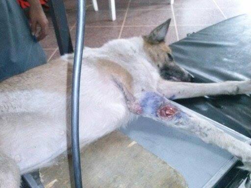Esta es Laika, una perrita ingresada de La Teja con gran infección en una pata. Fue amadrinada por una vecina del lugar.