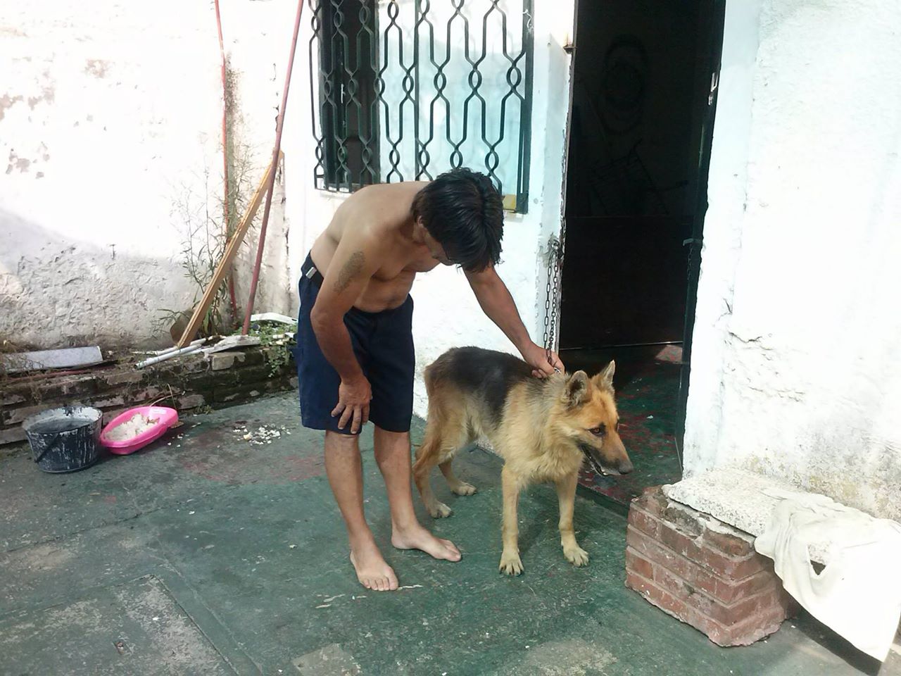 Al principio estaba muy agresivo, pero el pobre estaba reaccionando en respuesta a como lo habían tratado hasta el momento: como un animal de alta peligrosidad, siendo ingresado por el plantel de perros con bozal y bastón conductor.