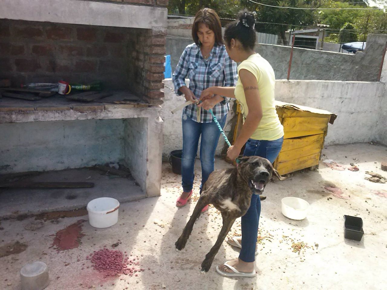 Negrita vivía en el fondo de la casa de una mujer insensible, donde la tenía atada a cadena perpetua, en una casilla sucia, con poco alimento y para colmo con un tumor de sticker en su vagina, el cual por falta de atención se había abichado!